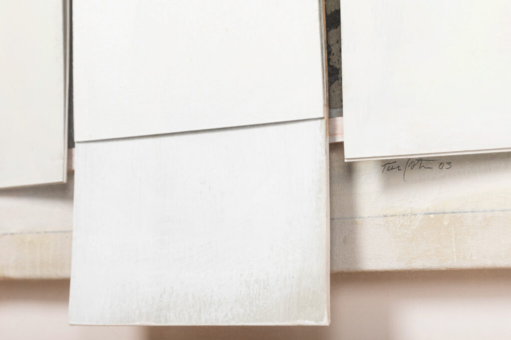 Lateral dret de la caixa banda adhesiva blanca "130 x 74 / 2003"
