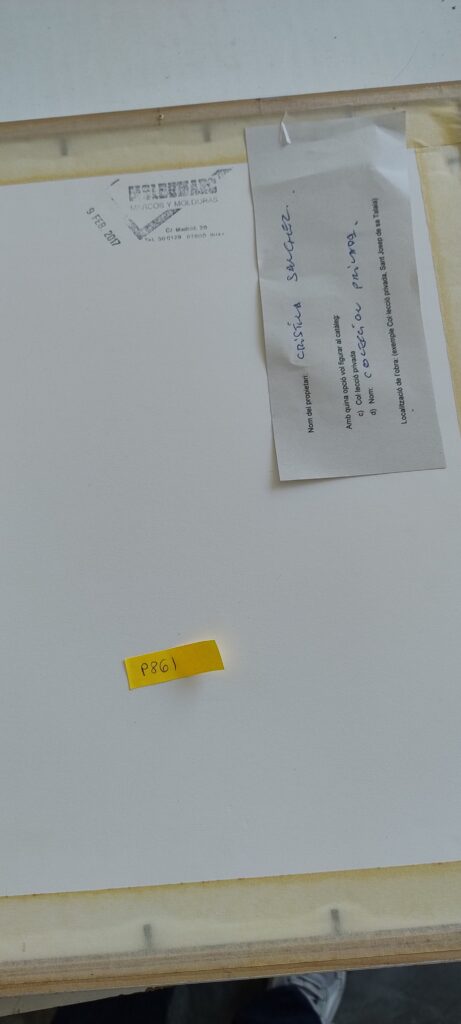 Emmarcat dins una caixa. Revers de la caixa: segell "9 FEB. 2017 / MOLDUMARC / MARCOS Y MOLDURAS / C/. Madrid, 20 / Tel. 300129 07800 Ibiza"