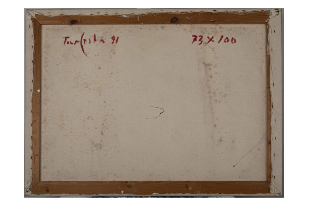 Signatura i inscripcions: Revers: signat i datat angle superior esquerra "Tur Costa 91". Inscripció "73 x 100"