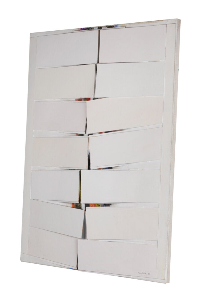 Revers: inscripció al bastidor part superior "S/T 73 x 60 cm / set finestres irregulars" Banda adhesiva blanca "EB 88"